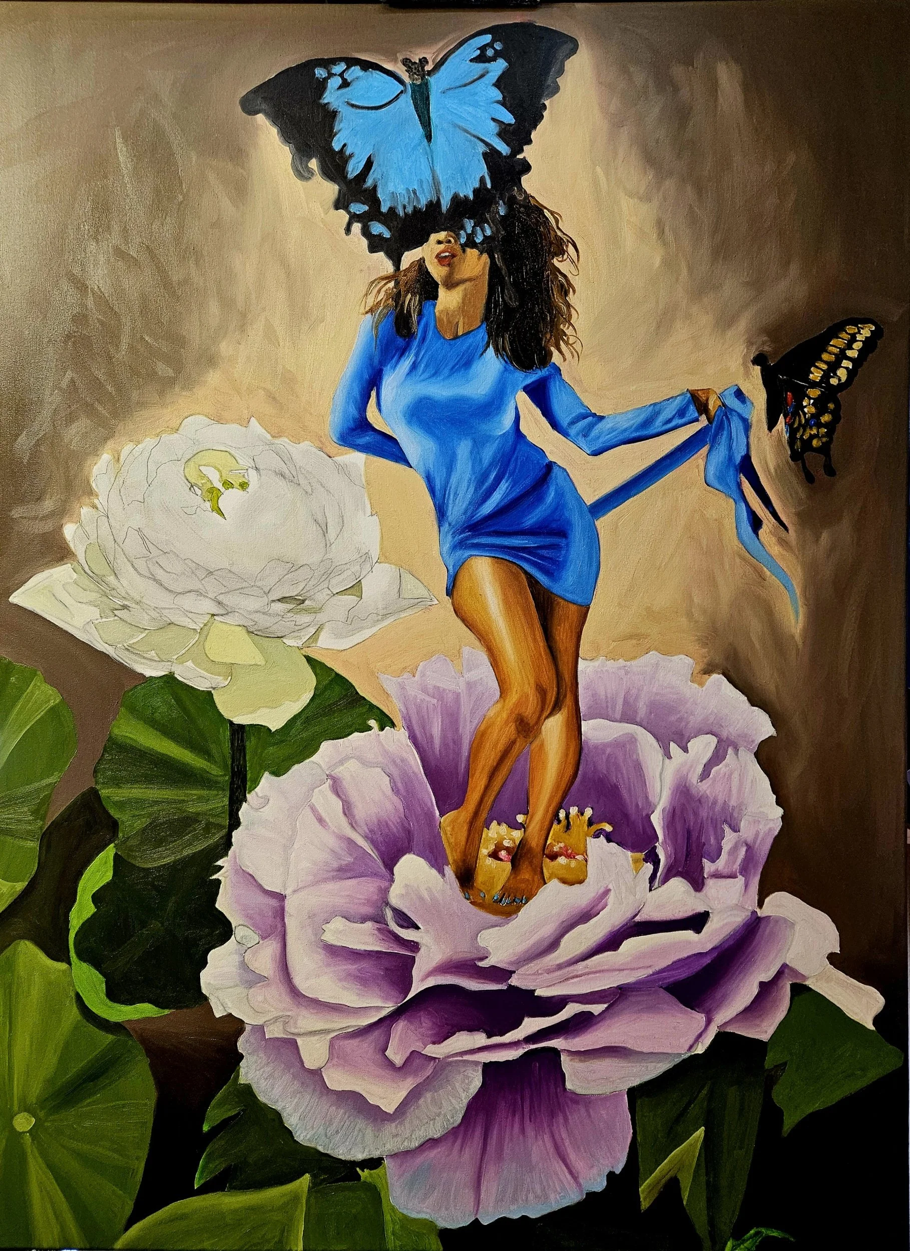 ‘Woman Blossom’ 36x48 oils on stretched canvas This exquisite piece, titled "Woman Blossom," is a captivating oil painting rendered on a generously sized 36x48 stretched canvas. The artist's skillful hand has brought a vibrant and dynamic composition to life. Every brushstroke on the canvas exudes a sense of passion and dedication. The rich textures and deep colors invite contemplation. It is truly a remarkable work of art.